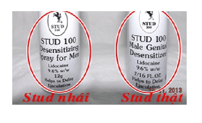- Thuốc trị xuất tinh sớm stud 100 chứa 9,6 lidocaine làm tê bề mặt niêm mạc đường sinh dục, làm giảm ma sat trong cuộc yêu, nhưng không làm giảm hưng phấn khi yêu.